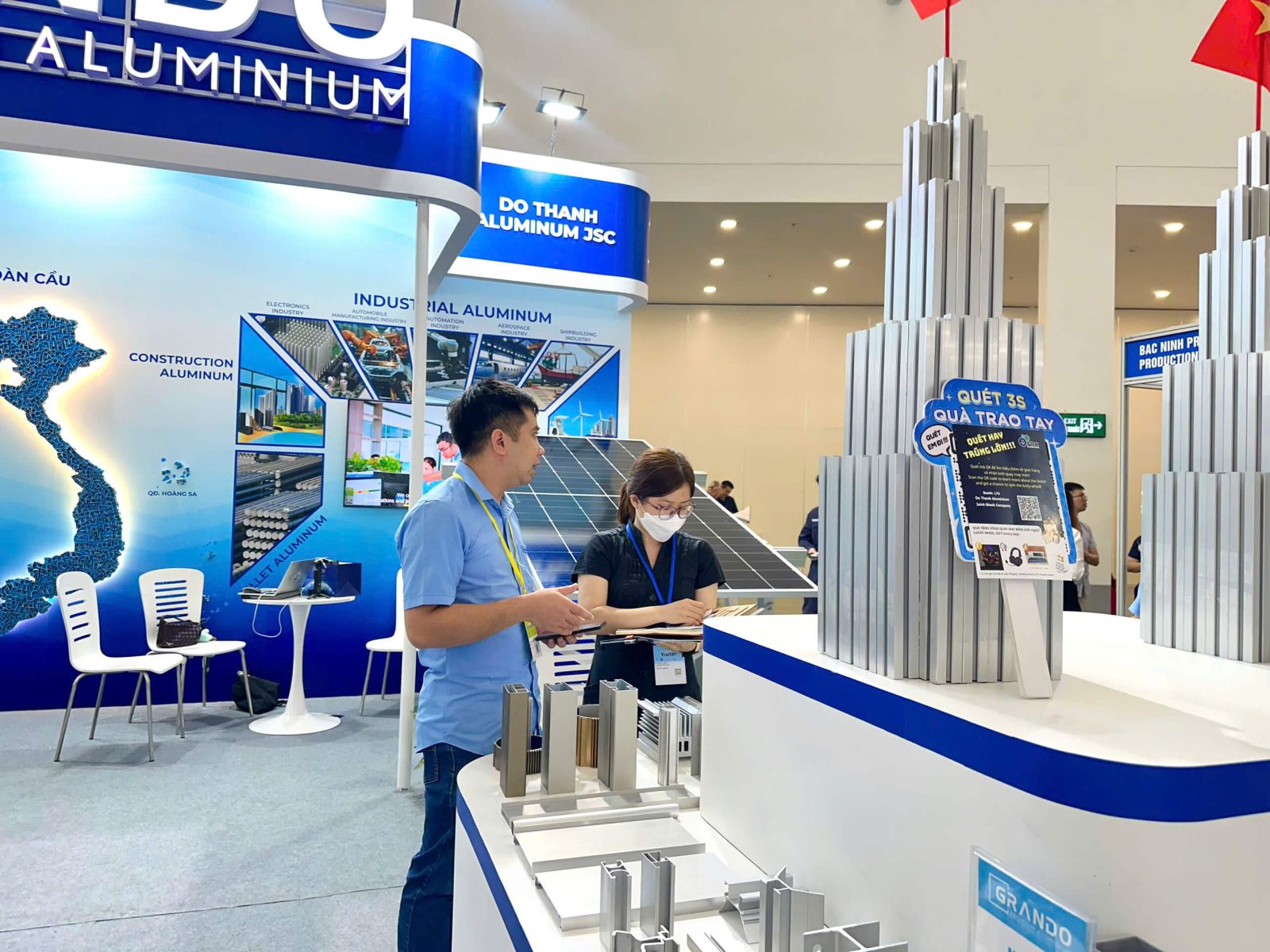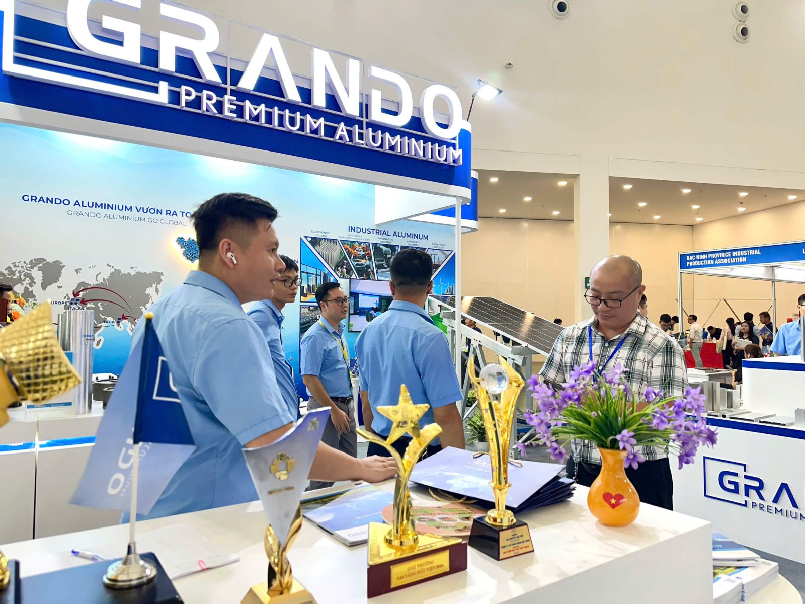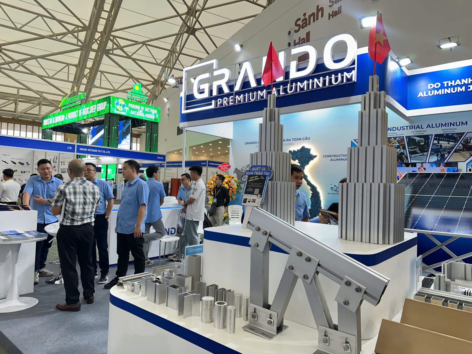Không chỉ mang đến sản phẩm, gian hàng Grando đã trở thành nơi kết nối, thu hút đông đảo khách tham quan và đối tác quốc tế nhờ sự chuyên nghiệp trong khâu trưng bày, đội ngũ tư vấn tận tâm và những trải nghiệm thực tế tại chỗ. Hàng nghìn lượt tham quan, hàng trăm cuộc trao đổi sâu sắc về thị trường, công nghệ và vật liệu tại gian hàng Nhôm Grando đã mở ra những kết nối hợp tác tiềm năng. Đây là minh chứng rõ nét cho năng lực, uy tín cũng như khát vọng nâng tầm giá trị nhôm Việt trên bản đồ thế giới