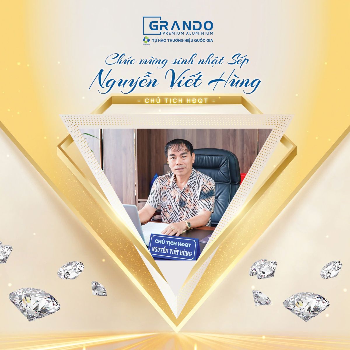 Nhân dịp đặc biệt này, đại gia đinh Grando kính chúc Chủ tịch thật nhiều sức khỏe, niềm vui và thành công. Mong rằng nguồn năng lượng tích cực, bản lĩnh lãnh đạo vững vàng và tầm nhìn sâu rộng của Chủ tịch sẽ tiếp tục là ngọn đuốc soi đường, dẫn dắt tập thể Nhôm Đô Thành gặt hái thêm nhiều thành tựu trên hành trình hội nhập và phát triển toàn cầu.