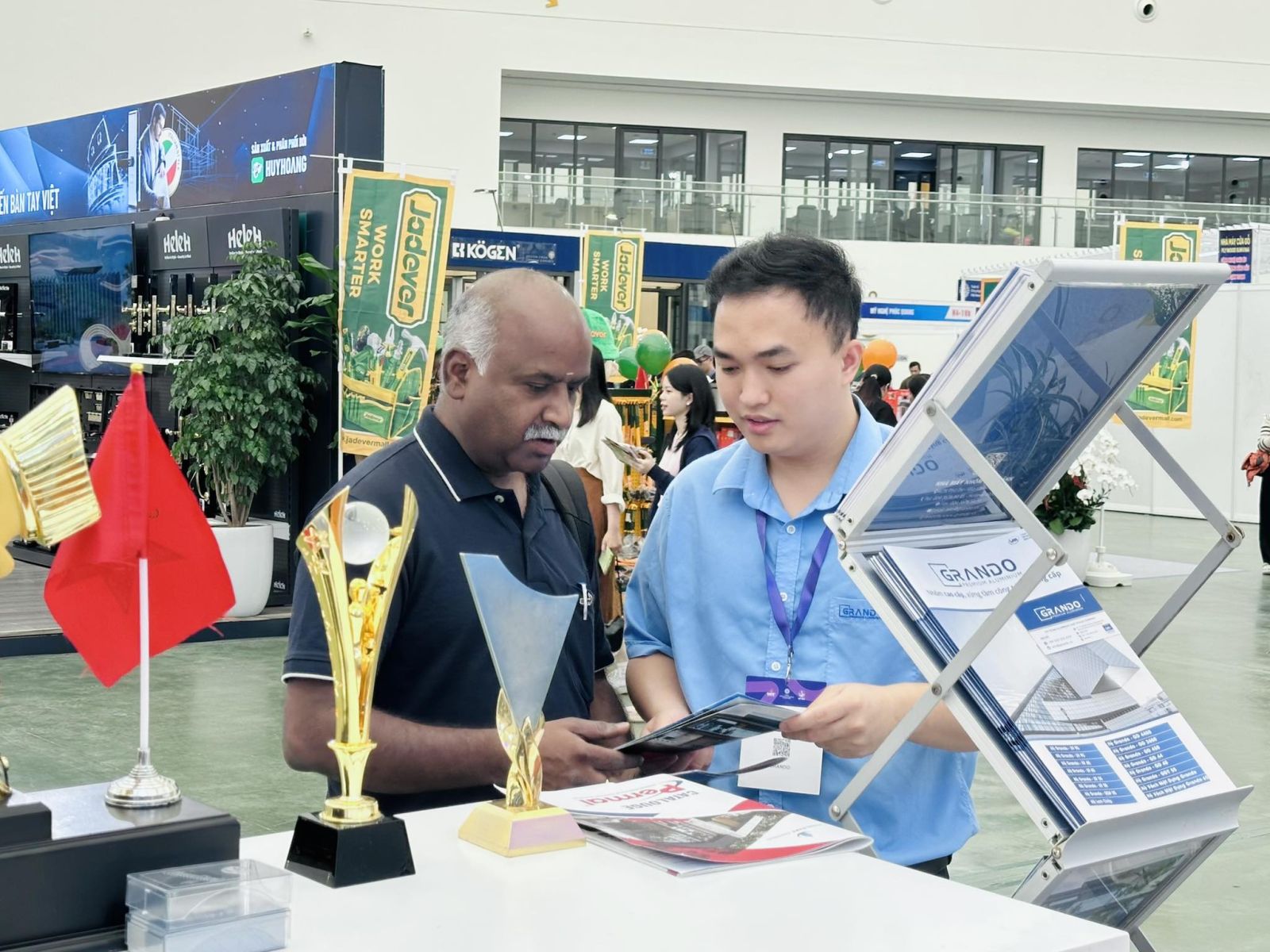 Gian hàng Grando thu hút sự quan tâm đặc biệt từ đông đảo khách hàng trong nước và quốc tế, bao gồm các đối tác đến từ Nhật Bản, Hàn Quốc, Singapore cùng nhiều doanh nghiệp Việt Nam đang tìm kiếm giải pháp vật liệu nhôm chất lượng cao và ổn định.