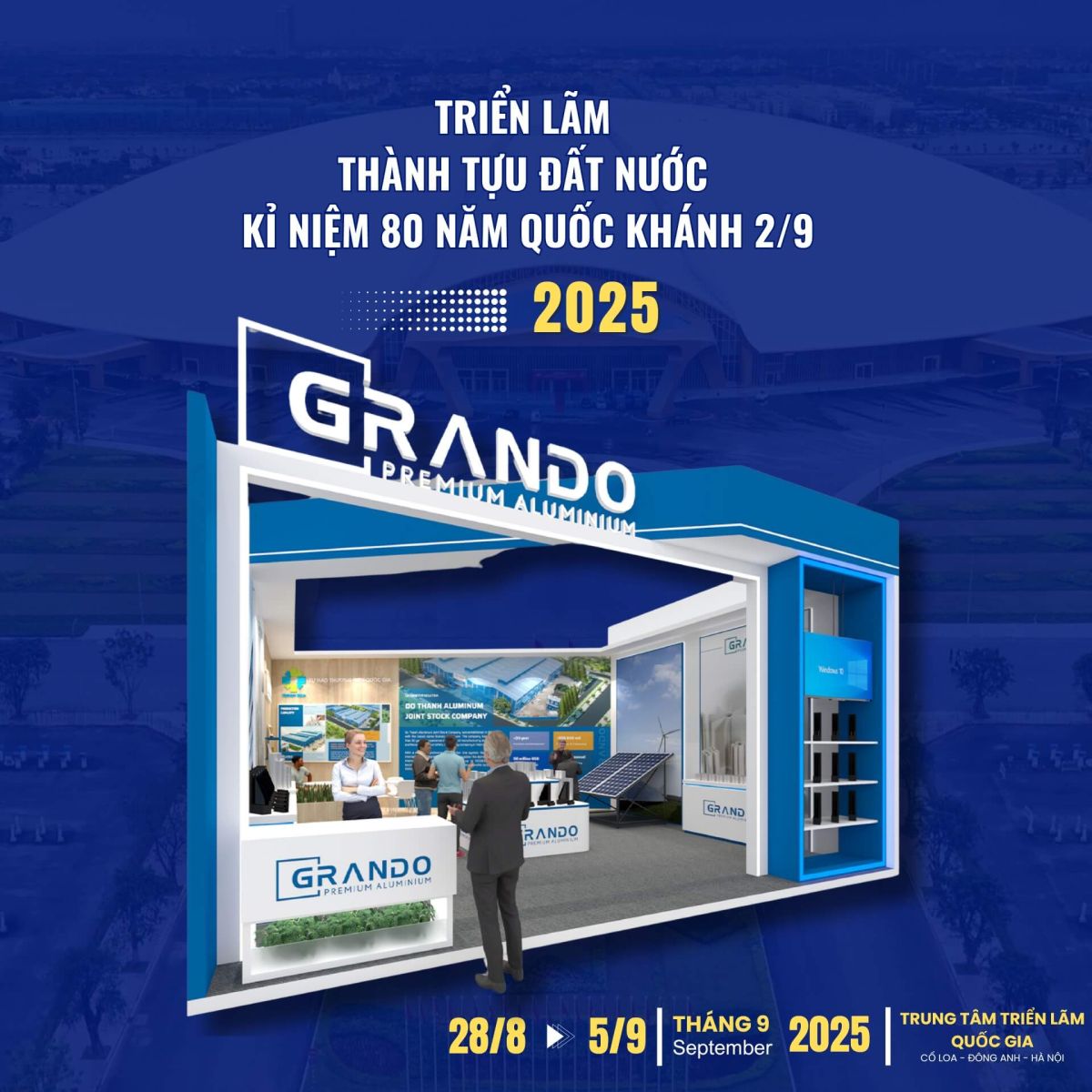 Trên cương vị là nhà sản xuất nhôm hàng đầu Việt Nam, Grando tự hào tham gia trưng bày sản phẩm tại Triển lãm, giới thiệu đến Quý khách hàng đối tác trong và ngoài nước những sản phẩm nhôm công nghiệp, nhôm xây dựng, và đặc biệt là khung viền pin năng lượng mặt trời – góp phần thúc đẩy xu hướng Net Zero toàn cầu.