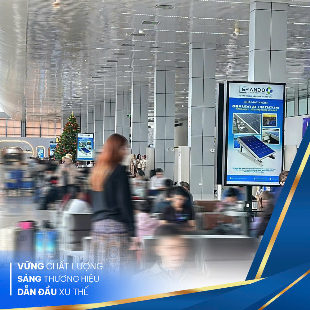 Việc xuất hiện tại sân bay không chỉ thể hiện tinh thần hội nhập, mà còn cho thấy định hướng phát triển dài hạn của Grando trong việc xây dựng hình ảnh một thương hiệu nhôm chuyên nghiệp, quy mô và đáng tin cậy. Song song đó, sự hiện diện tại các trục đô thị sôi động giúp Grando lan tỏa mạnh mẽ thông điệp thương hiệu đến cộng đồng và thị trường mục tiêu.