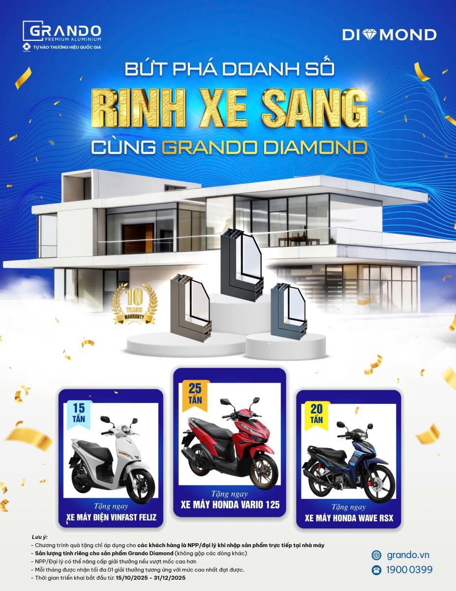 - Chương trình chỉ áp dụng sản phẩm nhôm Grando Diamond