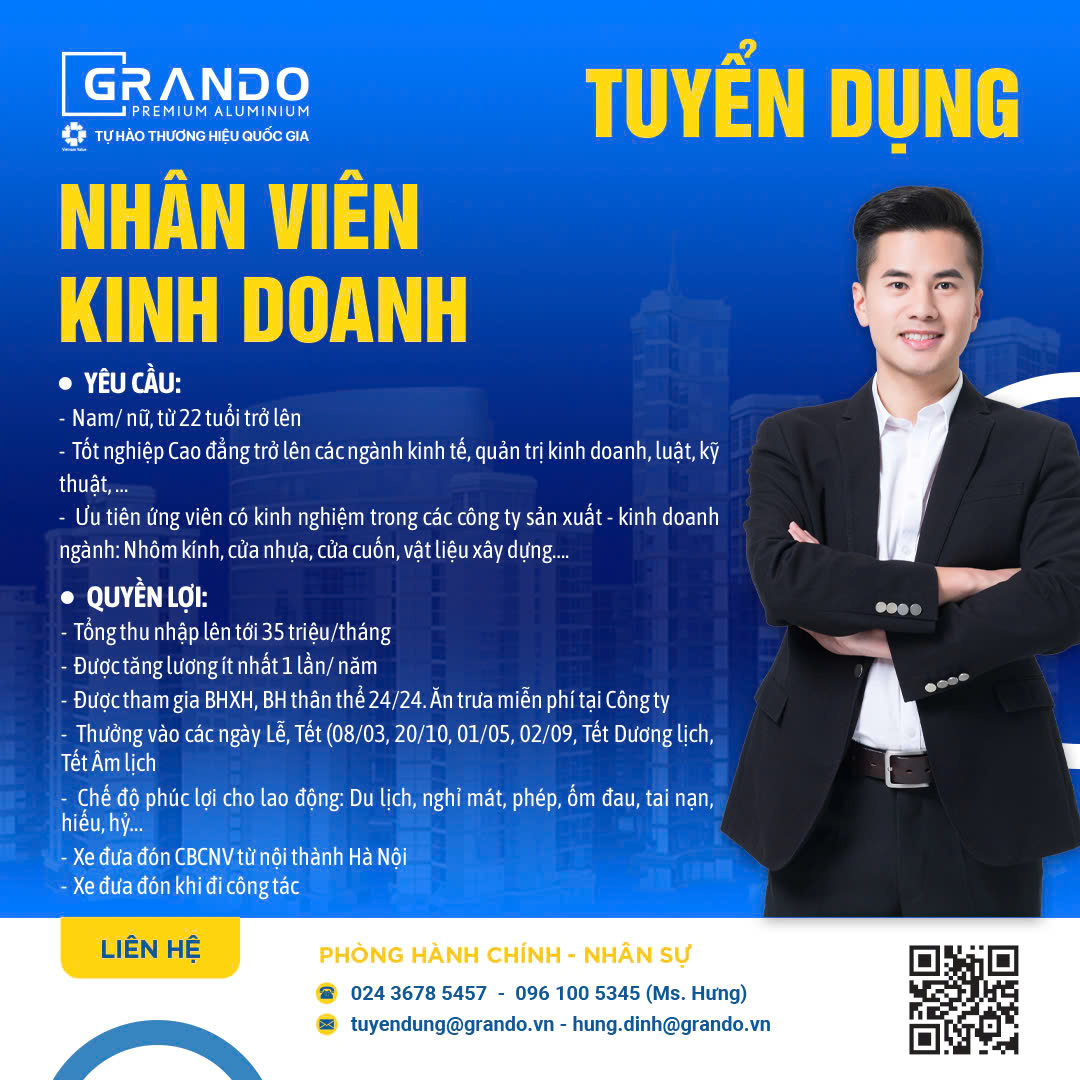 Thu nhập tới 35 Triệu/Tháng – Ứng tuyển ngay vị trí Nhân viên Kinh doanh GRANDO